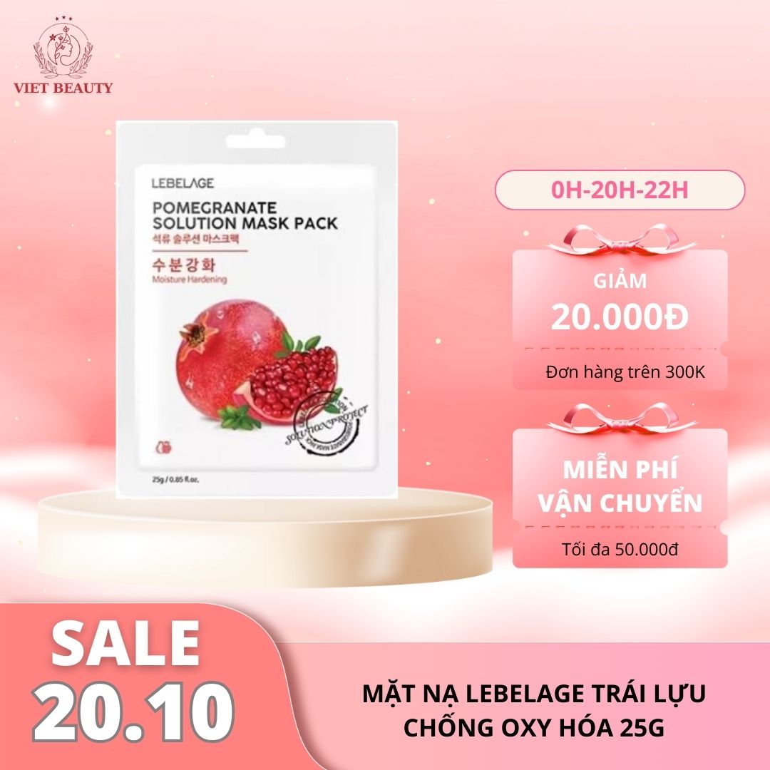Mặt Nạ Lebelage Lựu 25g giàu chiết xuất từ trái lựu đỏ, giúp chống oxy hóa, dưỡng ẩm và mang lại làn da săn chắc, tươi trẻ, rạng rỡ